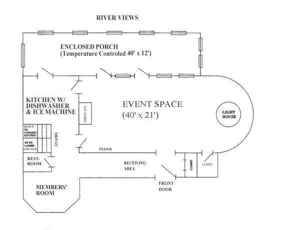On the porch, there is a 6’ x 27” board table, along with one high-top table with a 30” diameter. Additionally, six 36” x 36” card tables are available. Round tables can be configured with our chairs to comfortably seat up to 65 guests, while rectangular tables work well for buffet setups, displays, and gift tables.